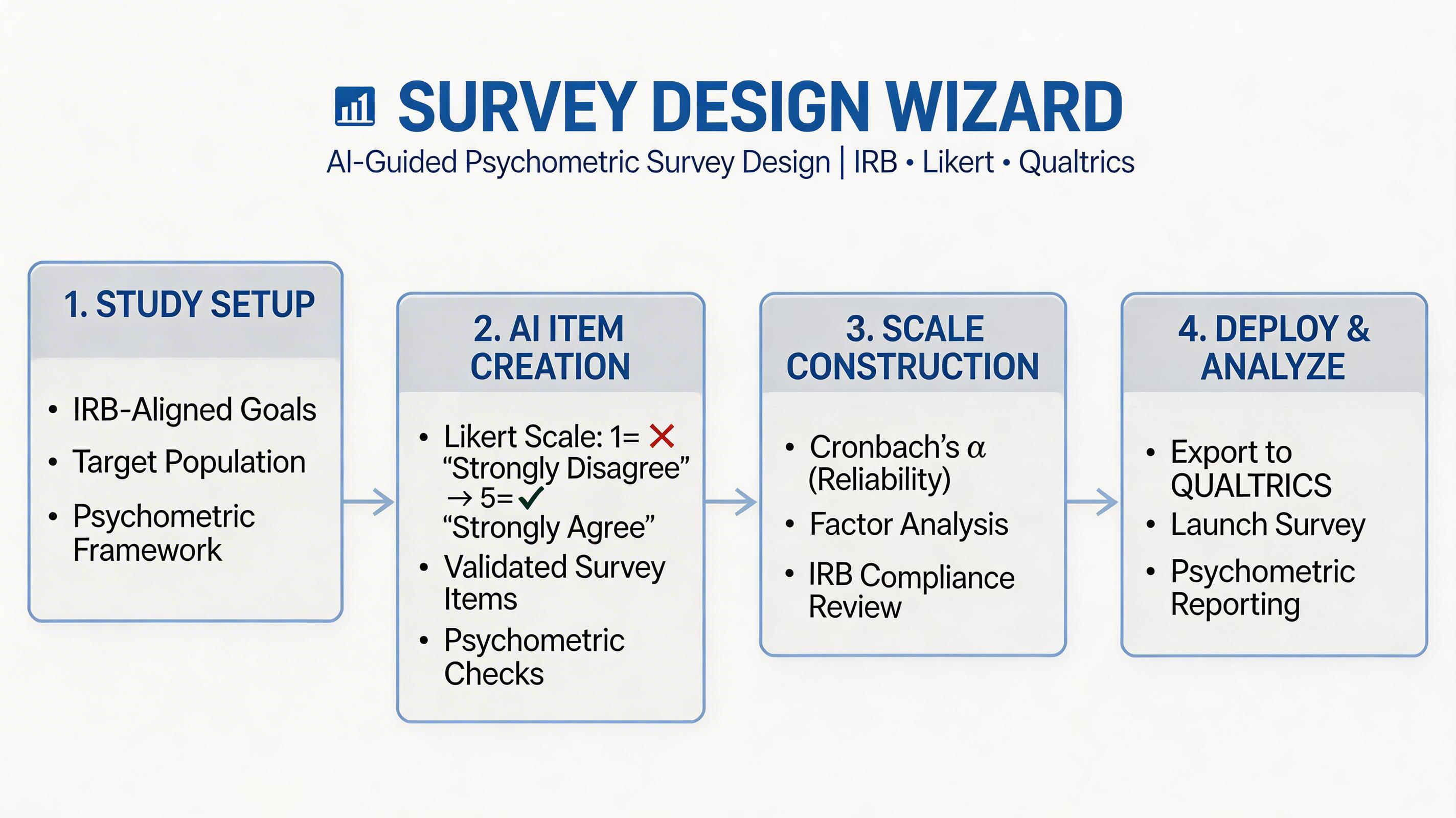 Design psychometrically valid surveys with AI-guided item writing and scale construction