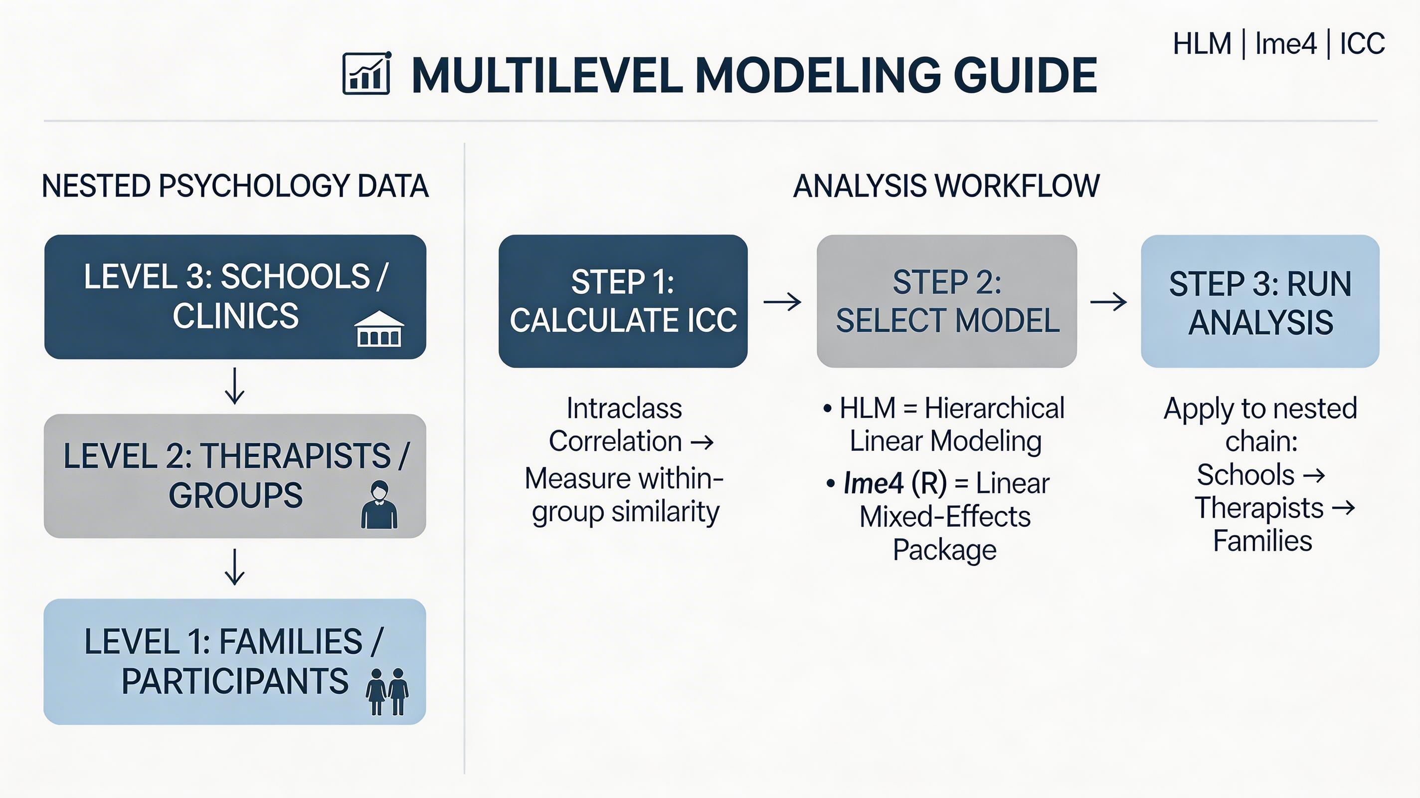 Run hierarchical linear models for nested psychology data — schools, therapists, families